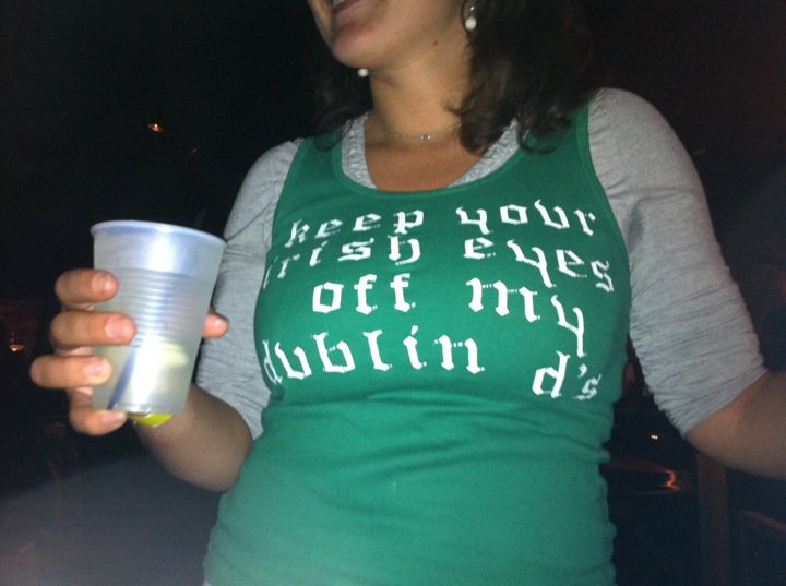 It is at this point that things start to go downhill. The brother needs to make a half-assed apology to the friend we’ve ditched, so I’m left all on me own on this St. Patty’s Day morn’, and decide it would be a wonderfull idea to.. attempt to get thrown out of a bar? This made sense at the time, swear. Like, so the brother has a friend of a friend who’d been thrown out of this bar downtown, Solas, for like, totally no reason. She’d gone to the men’s to pee (ladies was shut) and the bartender had gotten all dick-ish about it, so she (drunk, claro) told him to fuck off or something, and they threw her out. And then like, duh, she went in the other bar around the back. But… they tracked her down and called her on it, so she said she’d seen his manager in the bathroom blowing a dude. And the manager’s a dude. So they threw her out again and called the cops, leading to her hiding in a dumpster. Now I have decided this is bullshit, and I’m off to get myself chucked out of Solas, you know, as an act of solidarity, in my leprechaun suit…